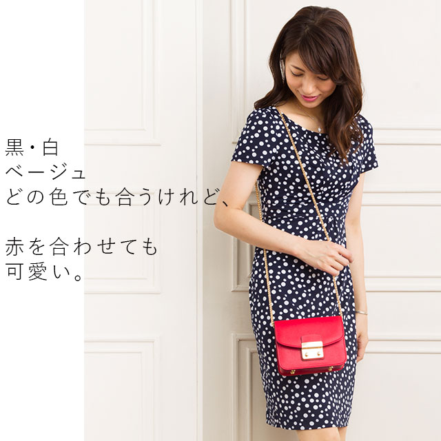 ケリーワンピ:ランダムドット ジャージー 30代 40代 大人 上品 エレガント ワンピース 半袖 膝丈 タイト 着やせ 春夏 大きいサイズ レディース ネイビードット 夏ワンピ S M L XL トールサイズ
