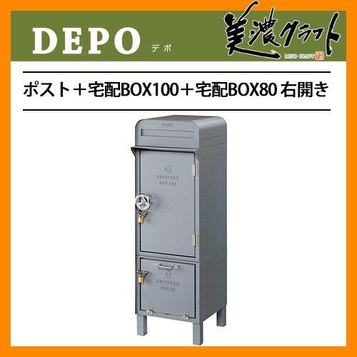 郵便ポスト 郵便受け 宅配ボックス デポ ポスト+宅配BOX100+宅配BOX80 右開き イメージ:グレー(2) DEPO 美濃クラフト 送料無料