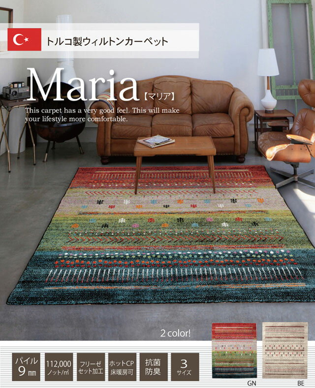 【200×250cm】長方形 ラグ カーペット ラグマット おしゃれ 【ホットカーペットや床暖房 対応】ラグマット リビングカーペット 絨毯 ひとり暮らしサイズ★トルコ製 ウィルトン織り カーペット マリア 200×250(ベージュ/グリーン)【02P03Dec16】