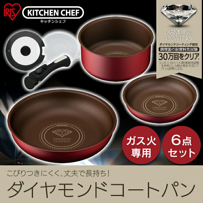フライパン セット ダイヤモンドコート 6点送料無料 ガス ダイヤモンドコートパン 6点セット H-GS-SE6 アイリスオーヤマ ダイヤモンドコーティング 取っ手 取れる 深型 鍋 ふた お弁当 ガス専用 おしゃれ 50万回クリア